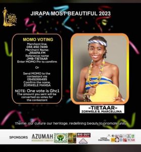 The First runner up for Jirapa Most Beautiful (JMB) 2023 Zorwele B. Marcellina with stage name Tietaar has taken bold steps to execute a life changing project dubbed ‘’Tietaar Clean Flow’’.